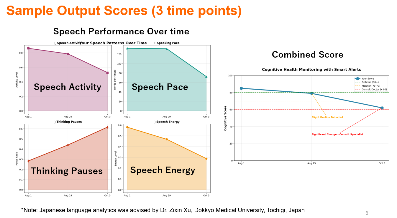 Our flagship product, KinaBot, a brain health barometer, that analyzes your voice and words from daily conversation, using score to monitor decline.